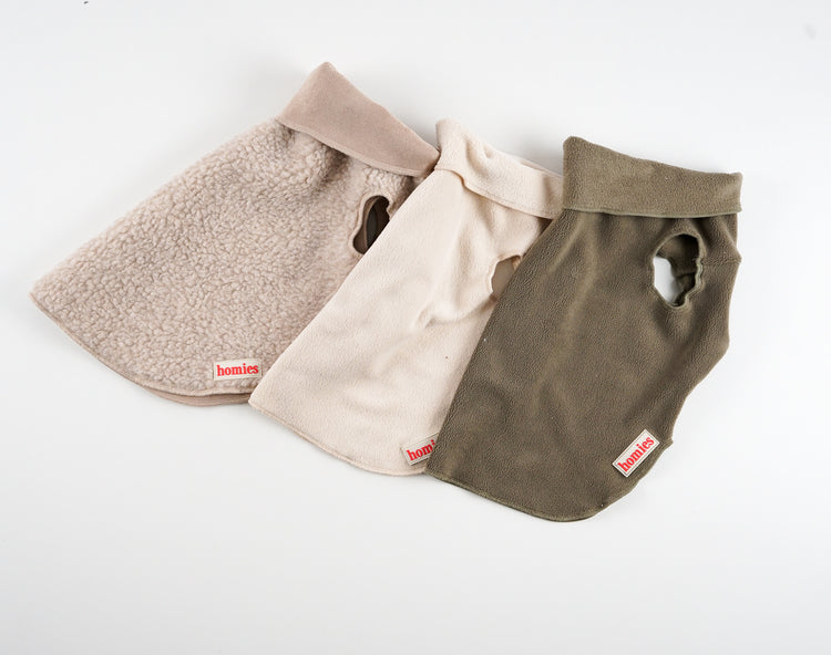 Warm. Soft. Made in the Netherlands. The Homies fleece jumper is built for cold winter days and crisp city mornings. Sustainably produced by Makers Unite in Amsterdam, using responsible materials (super comfortable stretch fleece). Lightweight, breathable and soft on the skin. The fit follows your dog’s shape without pinching and allows full freedom of movement for walking, cycling or travel.